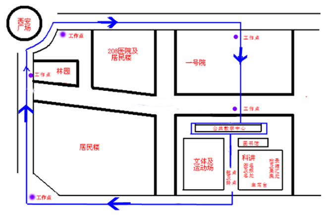 2、参赛选手应以跑步或步行的方式完成比赛。比赛过程中,参赛者按规定依次通过五个工作点(如图所示),届时工作人员将向通过选手发放通关标识;
