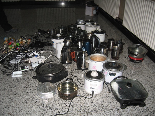 近日,学部对研究生、本科生公寓开展了春季安全检查。检查中发现学部大多数在校生能够遵守学部防火安全管理规定,不违规使用电热器具。但仍有个别学生宿舍违反学部规定擅自使用“热得快”、电褥子、电锅等学校明令禁止使用的电器,对他人及自身的人身财产安全构成威胁,对公寓安全防火构成火灾隐患。