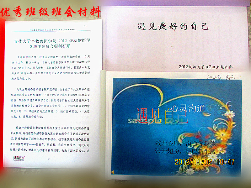 为了引导学生回顾成长历程,发掘心理能量,树立远大目标,不断完善自我,学生工作处心理发展中心开展了学部第七届心理文化活动月之“遇见自己”主题班会活动,活动以学院为单位,大一新生为对象。在历时一个月的时间里,得到了2012级辅导员和班主任的大力支持,各新生班级都积极参与活动,共汇总班会总结材料19份。经学生工作处认真评选,现将评选结果予以通报。