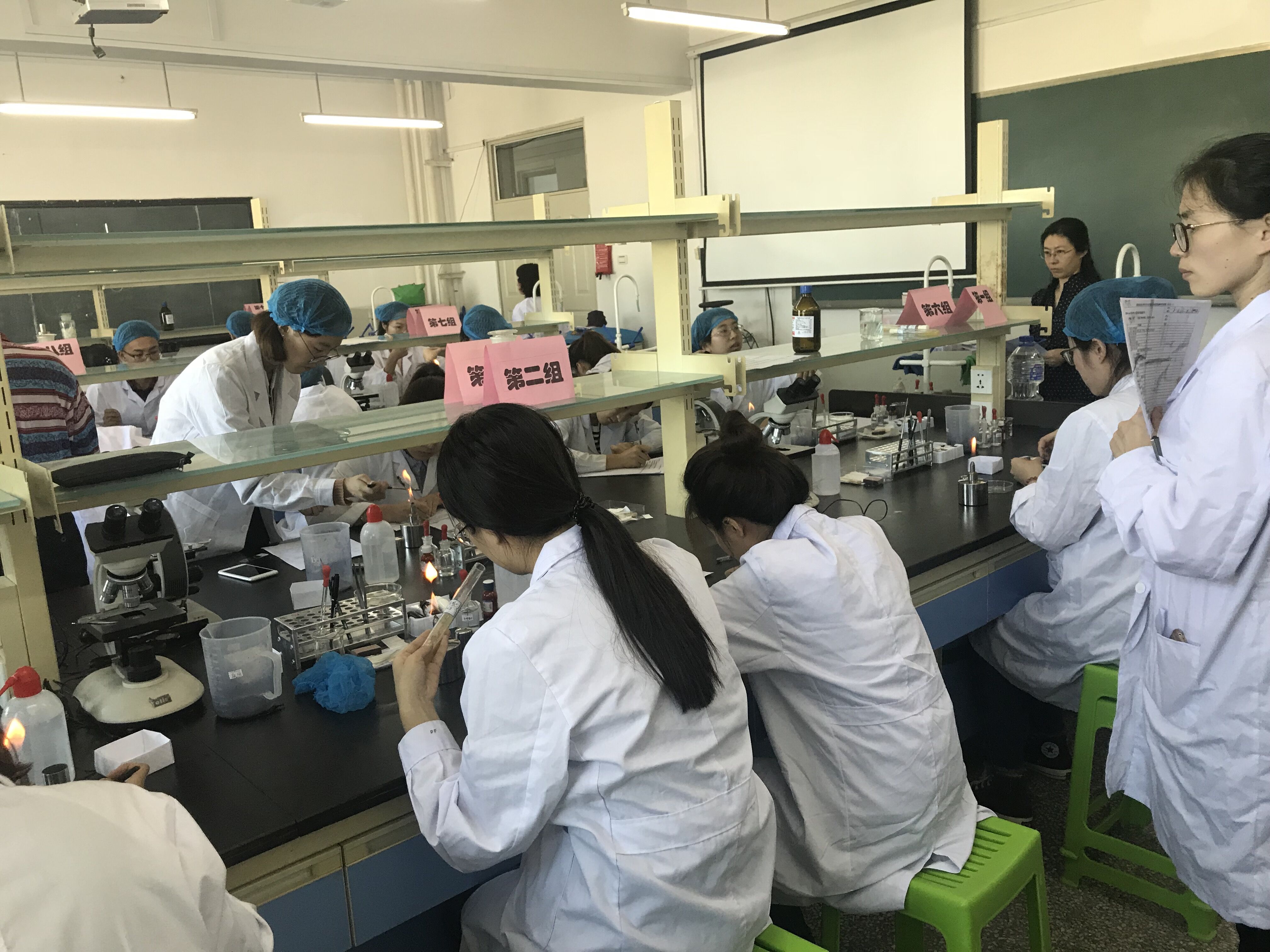 此次竞赛共设胰蛋白酶比活性的测定和Hucker改良的革兰氏染色法实验两个科目,学院初赛共有36组同学参赛,并由12名专业教师担任评委。比赛过程中,同学们本着“提升个人素质、提高实验技能、超越自我”的原则,将平时学到的理论和实践知识运用到实验操作中。各组的两位选手相互配合,团结协作,把生化实验和微生物实验的操作流程演绎的准确到位。经过同学们激烈的角逐和老师们严格评分,初赛共选出10组同学代表学院参加校级决赛。