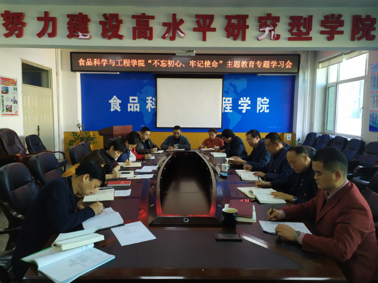 2019年11月11日,食品科学与工程学院在食品楼三楼会议室召开了“不忘初心、牢记使命”主题教育专题学习会,学院党委委员、纪委委员、各党支部书记参加了会议。会议由学院党委书记高福和同志主持。