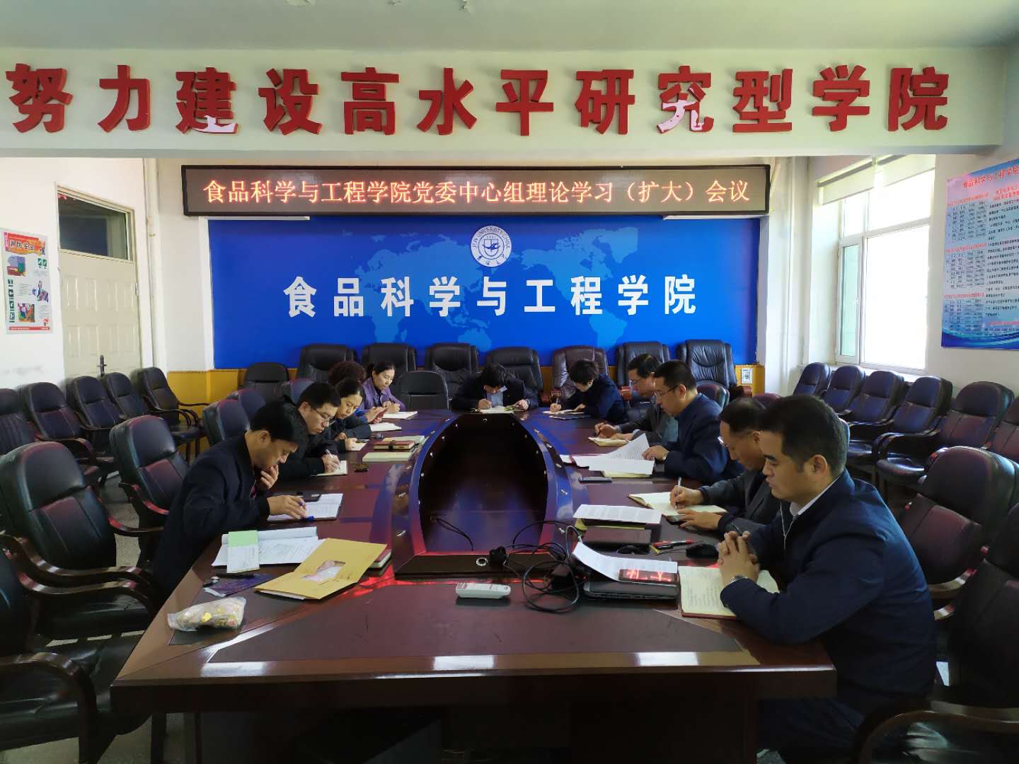 2019年5月6日,食品科学与工程学院党委召开党委理论中心组学习(扩大)会议。学院党委委员、纪委委员、各党支部书记参加了会议。会议由学院党委书记高福和同志主持。
