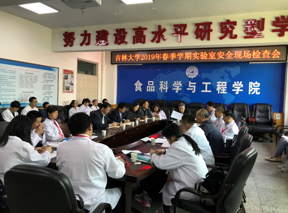 2019年5月9日,由吉林大学实验室与设备管理处专家组组长梁国锋带队的一行10位专家组成的吉林大学实验室安全工作检查组到食品科学与工程学院检查实验室安全工作。学院院长张铁华、副院长李勇军、周亚军等相关领导及实验中心全体老师、相关实验室负责人、学生代表参加了会议。