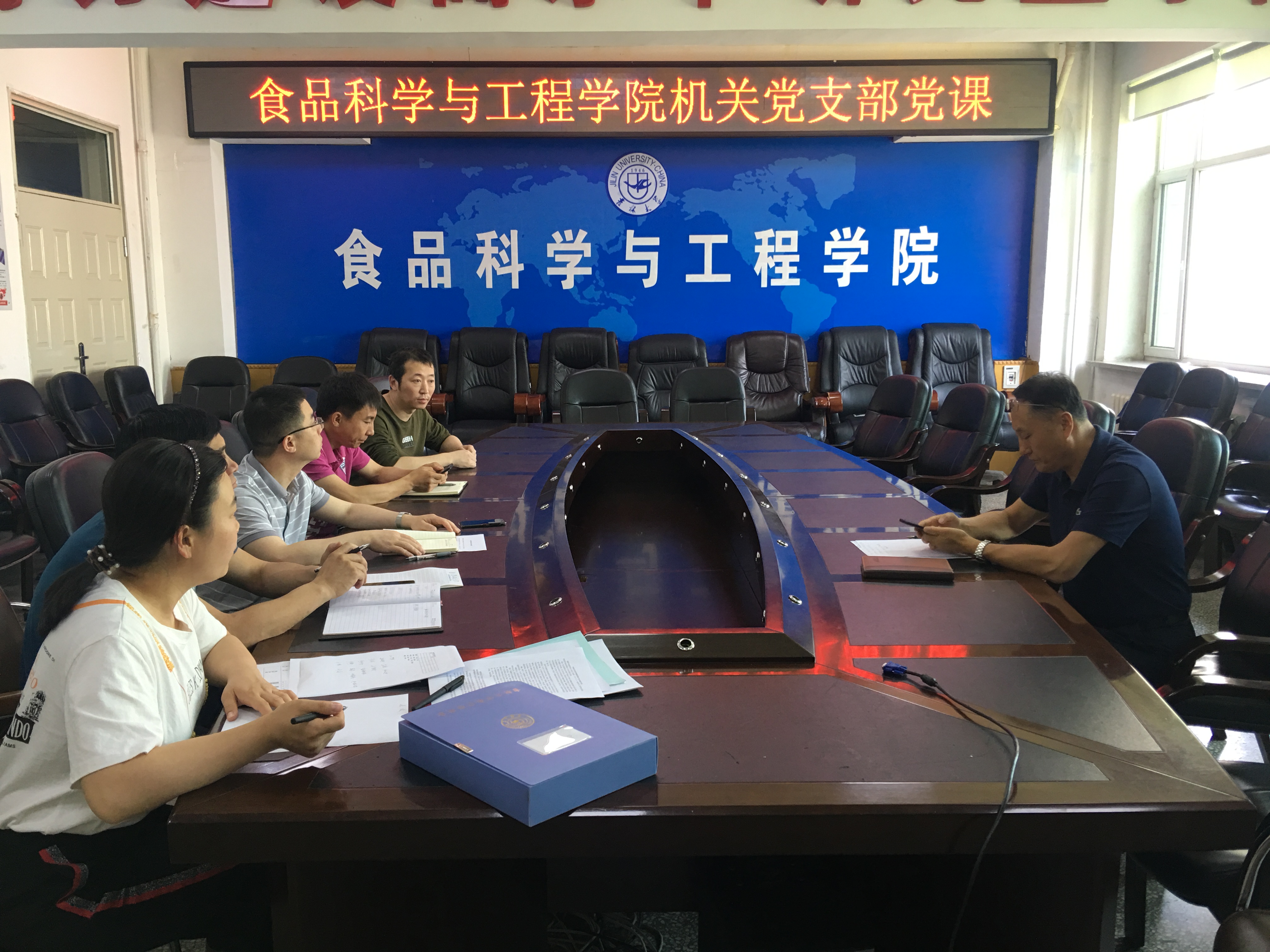 为了进一步增强党性修养, 6月6日下午,食品科学与工程学院机关党支部在食品楼三楼会议室开展了以“没有中国共产党的坚强领导就没有中国的繁荣富强”为主题的党课学习教育活动,学院副院长李勇军同志担任主讲,机关党支部全体成员参加了此次党课学习教育活动。党课学习教育活动由机关党支部书记马爽同志主持。