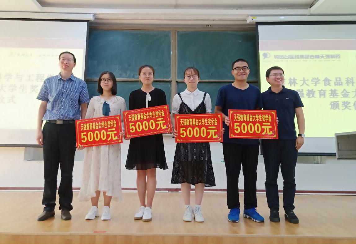 钓鱼台医药集团吉林天强制药有限公司坐落在长白山脚下,是一家现代化的中药企业。2018年2月,公司与我院签订共建协议,计划在教学科研等方面开展全面合作。今年,天强公司决定在我院设立“天强教育基金大学生奖学金”,资助金额10万元,用于资助热爱食品专业、品学兼优的大学生。该奖学金将对学院学生培养起到积极的促进作用。
