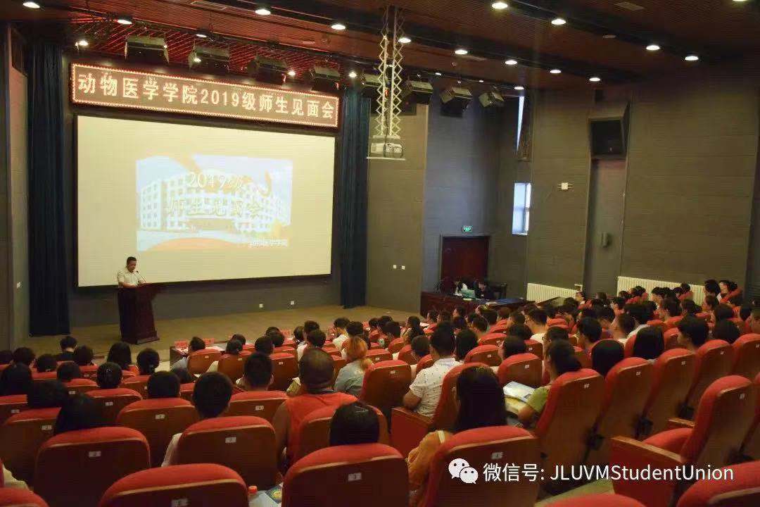 为了加深2019级新生对吉林大学动物医学学院的了解,2019年8月27日,动物医学学院在图书馆二楼学术报告厅召开了2019级师生见面会。动物医学学院领导班子、办公室主任、教学系(中心、医院)主任等代表出席了会议,2019级全体119名新生参加了此次大会。会议由学院党委副书记饶家辉主持。