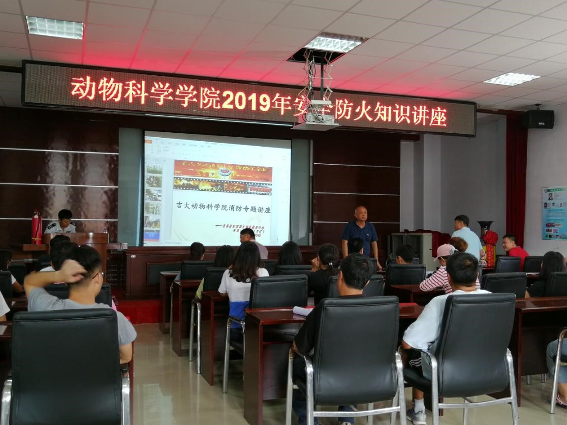 为贯彻落实吉林大学2019年消防安全工作方案,切实增强师生安全意识、提高消防自救、处理突发事故的能力,9月6日下午,动物科学学院在学院一楼会议室举行了“动物科学学院2019年消防安全防火知识讲座”。学院党政领导班子成员、部分教职工代表及研究生新生参加了本次活动。活动由行政副院长于景海主持。