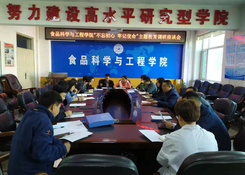 根据“不忘初心 牢记使命”主题教育安排,2019年10月11日下午2:30,食品科学与工程学院在食品楼三楼会议室召开“不忘初心、牢记使命”主题教育调研座谈会。学院领导班子、党委委员、纪委委员、各党支部书记及支委参加了会议。会议由学院党委书记高福和同志主持。