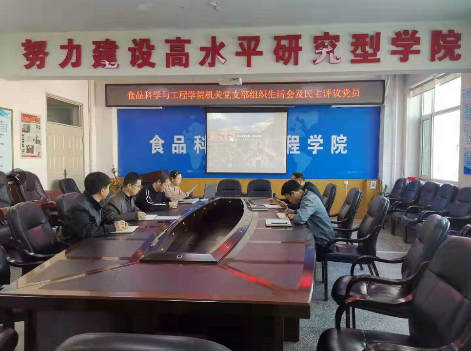 根据学院“不忘初心,牢记使命”主题教育工作要求,2019年11月15日,食品科学与工程学院机关党支部在食品楼三楼会议室召开了2019年度组织生活会并开展民主评议党员工作。会议由党支部书记马爽同志主持