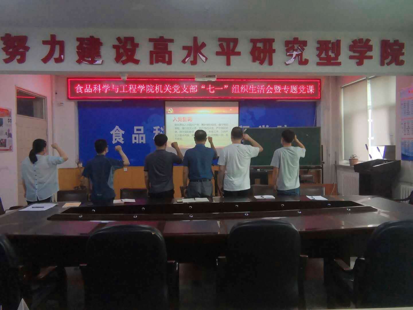 2020年6月22日下午2:00,食品科学与工程学院机关党支部在食品楼三楼会议室举办了“七一”专题组织生活会暨专题党课,机关党支部全体党员参加了会议。学院机关党支部全体党员参加了此次会议。会议由党支部书记马爽同志主持。