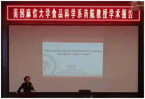 为推进学院国际交流,应张铁华院长邀请,11月21日,国际食品领域知名学者、美国麻省大学肖航教授应邀来到食品科学与工程学院,为学院师生做了一场以“食物生物活性物质与肠道菌群之间的相互作用”为主题的精彩报告。副院长孙春燕教授主持报告会,学院教师代表、全体研究生和部分本科生参加报告会。