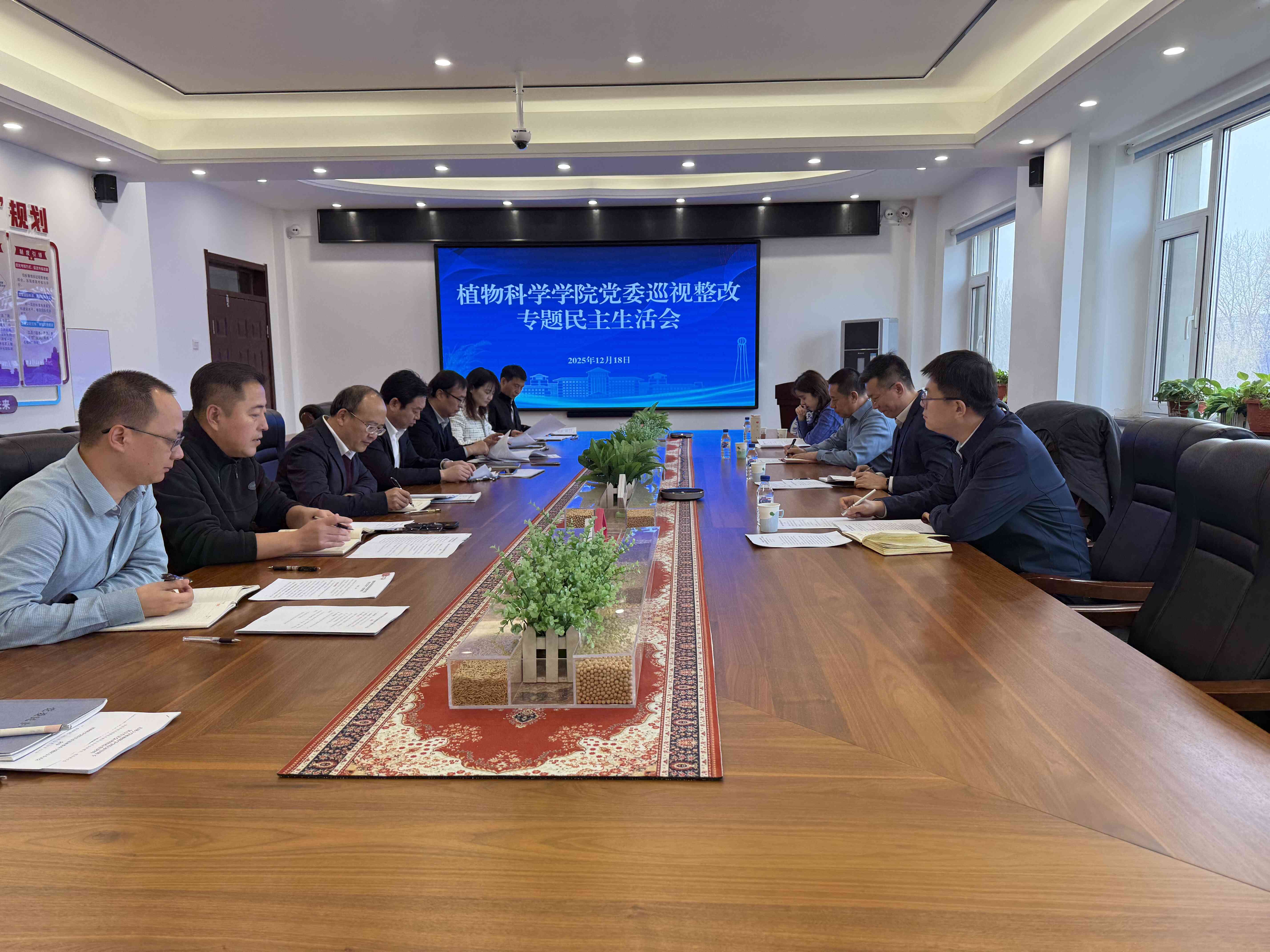 根据学校党委工作部署和巡视整改工作安排,2025年12月18日,植物科学学院党委组织召开巡视整改专题民主生活会。学校党建工作联络员高福和,第三轮巡视第二巡视组组长、党委巡视工作办公室正处级巡视专员赵大伟,组织部副部长段然,纪检监察机构康子茜列席会议。会议由学院党委书记田进主持,学院党委领导班子成员参加会议。
