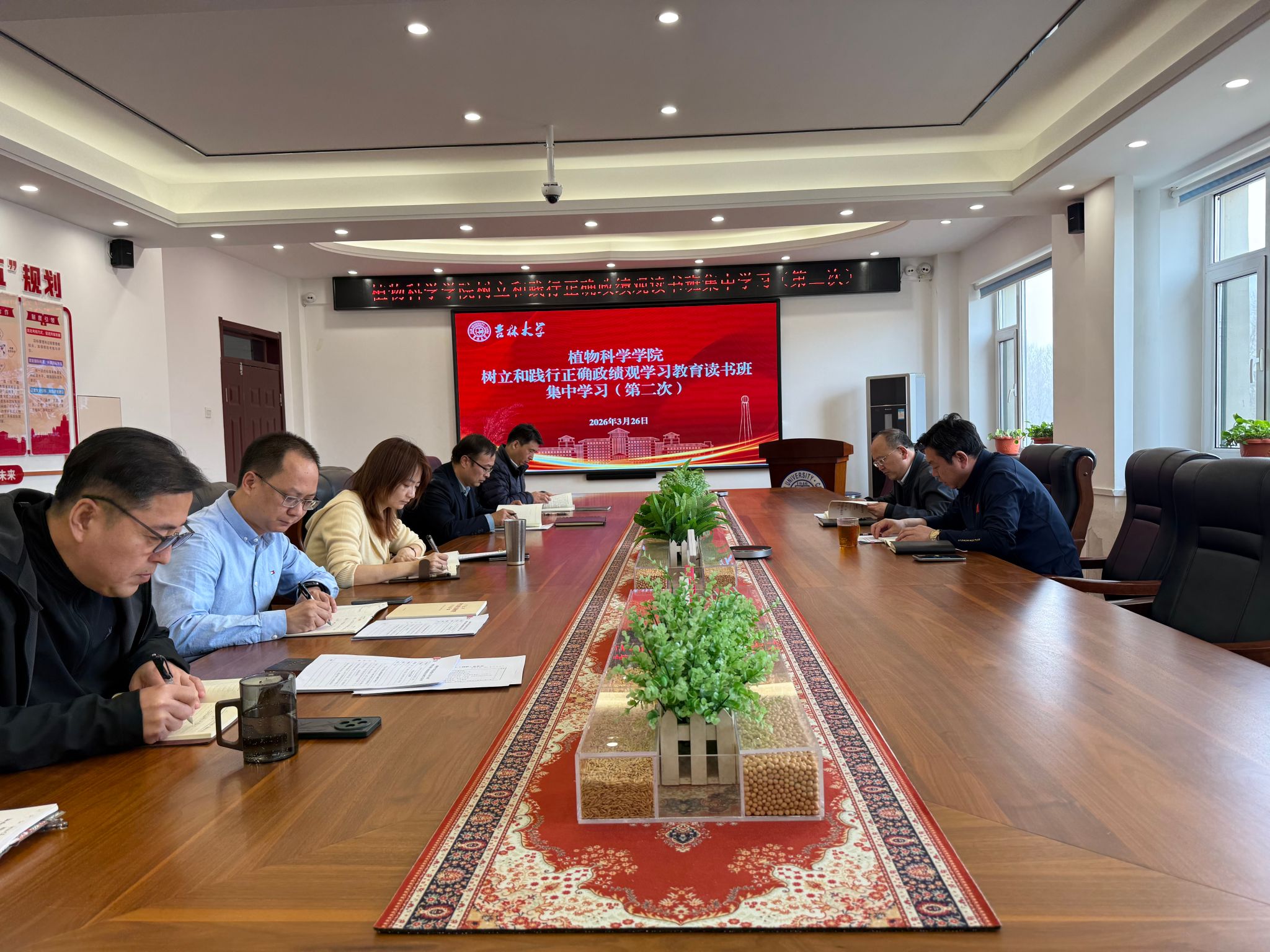 3月26日,植物科学学院党委组织树立和践行正确政绩观学习教育读书班第二次集中学习,学院领导班子全体成员参加学习,学习由学院党委书记田进主持。