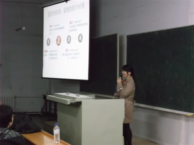 讲座以当下十分热门的 “求婚门”事件展开,内容包括了爱情的定义、恋人间的有效沟通、恋爱的困扰三大方面。同学们在互动的形式下、在轻松愉快的氛围中了解了爱情的含义,学习了如何在恋爱中与恋人进行有效的沟通,掌握了平衡学习与恋爱的关系、处理单相思、失恋、婚前性行为等恋爱困扰的知识和解决办法。在两个小时的讲座中,掌声和笑声不断。