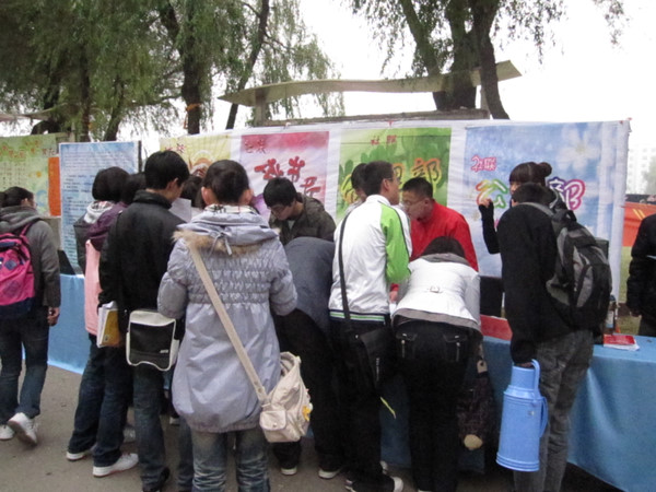 此次纳新主要面向2010级新生,纳新处为秘书处、管理部、信息部、公关部四个部门,从早上8点到下午3点半,纳新处一直络绎不断地有同学前来报名。这些同学中,有的信心满满,自信的笑脸仿佛在说我相信自己会成为社联的一份子;有的由于对社团联合会这样的学生组织不了解,在那里犹豫徘徊,但经过师兄师姐耐心而细致的介绍后,羞怯的脸上又露出灿烂笑容,随即在报名表上写下了自己的名字。天气虽然有些寒冷,但却退却不了同学们的热情,纳新处一次又一次地迎来报名热潮,截止到下午三点半报名结束,社联报名表上已有一百多名同学的名字。