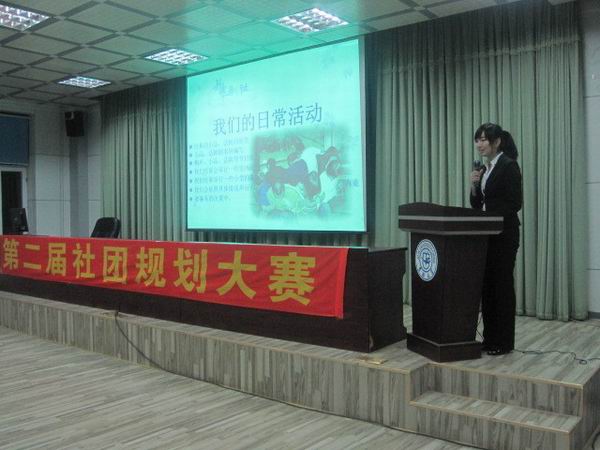 经过紧张激烈的初赛,最终有16支队伍社团脱颖而出。比赛首先由各个队伍进行ppt展示及演讲,演讲内容主要围绕“我的社团2011畅想曲”主题进行,各个队伍尽显才华,将自己对社团的未来计划描绘地详尽且清晰。精美的ppt展示,精彩的演讲赢得了评委及在场所有观众的好评及阵阵掌声。由于流星台球社队伍与木棠文学社队伍出现平分情况,两队进行激动人心的现场PK环节,由各社团代表组成的大众评审团来决定胜负,最终木棠文学社略胜一筹。