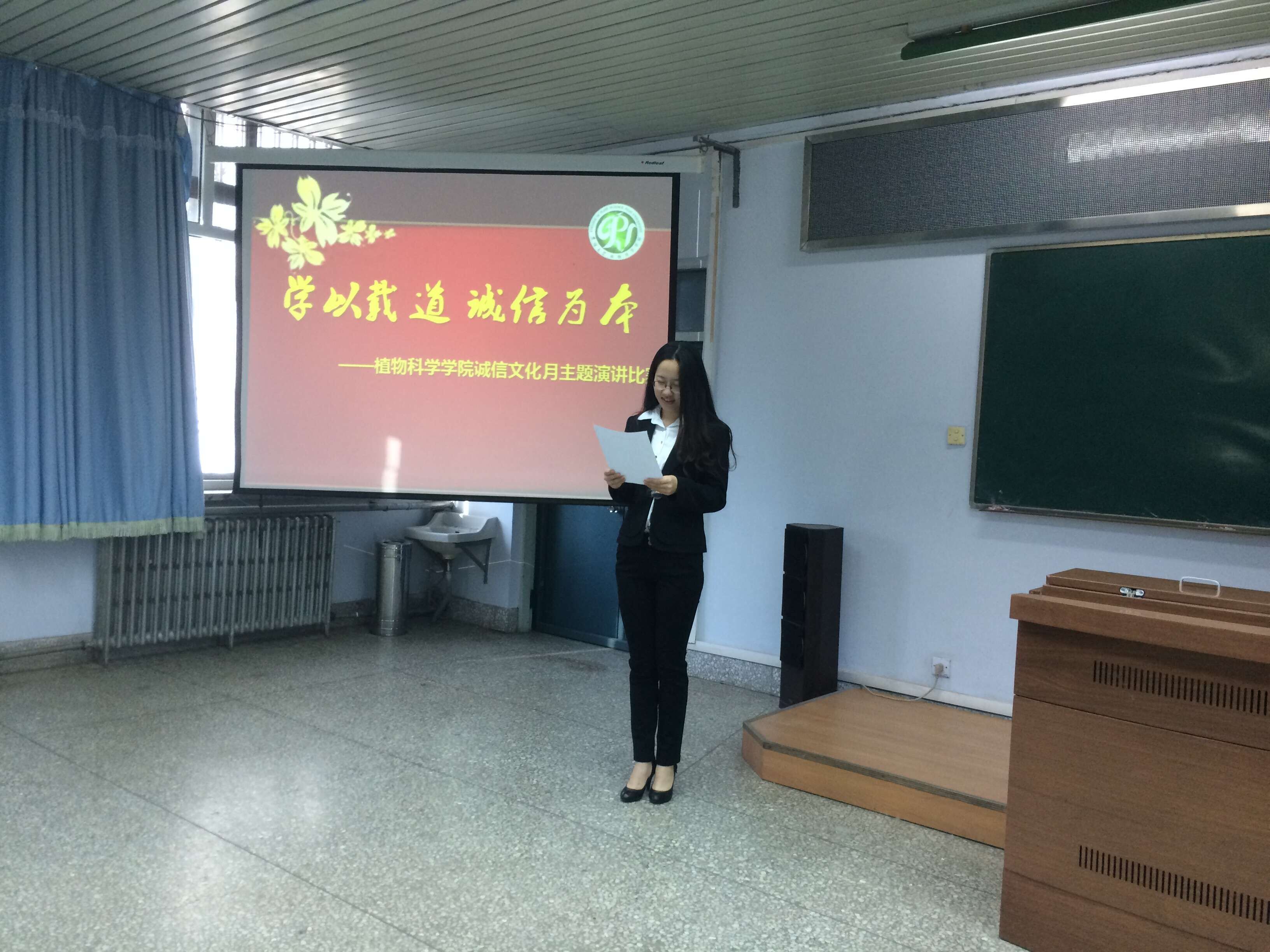 2015年6月4日下午,植物科学学院“学以载道,诚信为本”为主题演讲比赛在农学楼二楼多功能报告厅成功举行。参赛选手从行事为人、道德品格及思想内涵等方面进行了精彩的演讲。