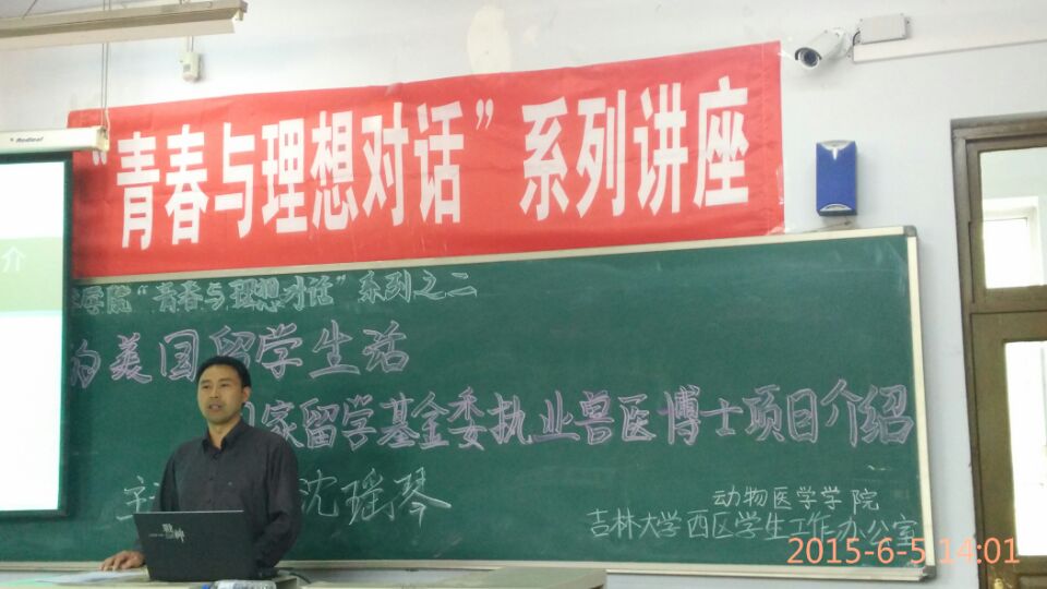 接着,丁一博士为我们揭开了DVM项目的面纱。从国外的学位制度以及与国内的学习制度的比较向我们讲述了DVM项目对我国兽医事业发展的重要性。用幽默诙谐的语言向我们分享了自己国外有趣、充实的学习生活,以及结合自己的学习经历讲述了自己的学习结构和有效的学习方法。希望我们在以后的学习生活中可以学以致用、更上一层楼。