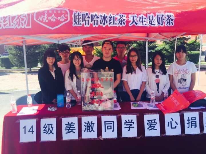 今年暑期食品科学与工程学院2014级食品科学与工程专业姜澈同学被确诊为患有急性非淋巴细胞白血病AML-M6。万幸的是,与姜澈妈妈的骨髓配型成功。但巨额的医疗费用却无力承担,致手术迟迟无法进行。在得知姜澈同学的情况后,学院领导和同学高度重视,于9月17、18两日在吉林大学西区组织了现场爱心募捐活动,并于9月20日在文化广场、吉林大学各大校区、东北师范大学以及吉林大学莱姆顿学院进行街头募捐和校园募捐。