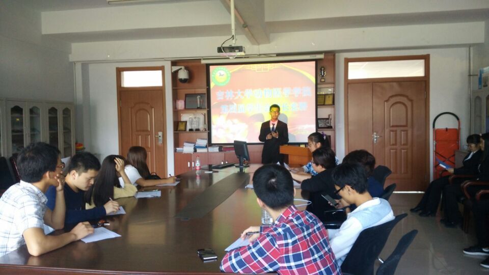 时光如白驹过隙,学生会改选在即。 2015年9月23日上午,动物医学学院学生会在动物医院二楼会议室成功召开了第三届学生会主席团换届竞选大会。动物医学学院党委副书记饶家辉,辅导员谭瑶老师、动物医学学院第三届学生会主席团出席了本次会议并担任评委。9月24日上午召开了第三届学生会部长换届竞选大会。
