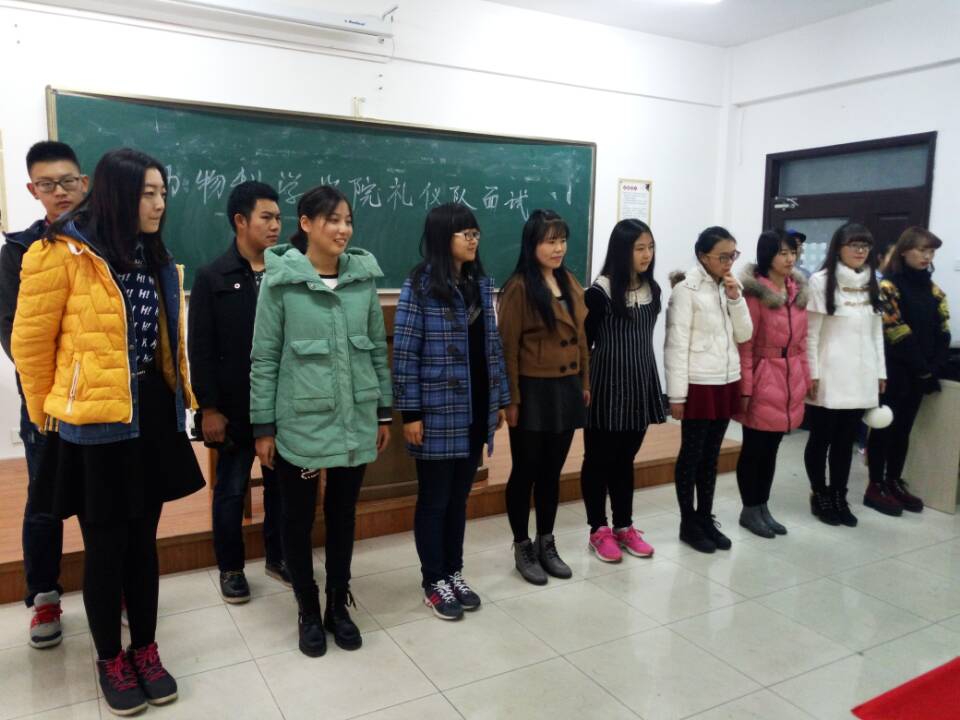 为发掘和培养具有礼仪天赋和潜力、综合素质突出的优秀学生,动物科学学院学生会秘书处于11月7日下午13:30在吉大南区经信楼A104教室举行2015年礼仪队纳新面试。我院学生会秘书处副秘书长王琦等人担任本次面试的评委。