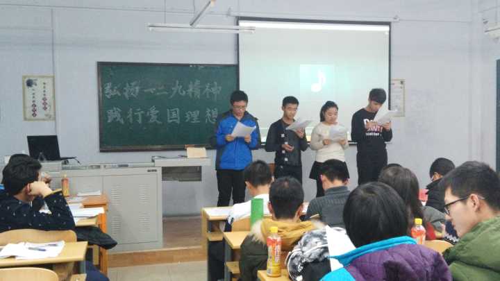 比赛开始,首先是魂归一二九,点亮中国梦之知识百科竞赛,各个小组在此环节中用自己渊博的学识震惊了观众和评委们,观战的人都会热血沸腾!第二环节是心有灵犀赤子心之战友默契大考验,在本环节中,各个小组大出奇招,有十分默契的小组,立马就能心灵社会,也有会错意的小伙伴,猜出了让人捧腹的效果。接下来,是传唱红歌,重温经典之红歌旋律记心间环节,这是最考验实力的环节,有的小组在本环节中毫无收获,也有的小资族在本环节中百发百中,让人赞叹!最后一个环节是承先贤风骨,展青年魂姿之小组风采展演,在本环节中,有的小组选择了慷慨激昂的诗朗诵,他们用心灵呐喊出了对祖国和党的热爱,和对一二九运动的铭记;也有的小组选择了话剧表演,重现了一二九运动的情景,仿佛带我们回到了80年前,带给我们一种身临其境的感受!最后,在赛后环节中,我们评选出了优秀征文,每个班级制作了海报,将征文展出,并且征文正在吉大动医微信公众平台火热投票中!
