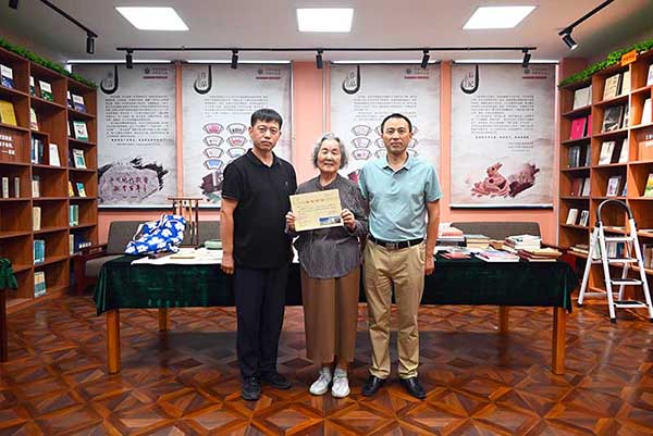 捐赠期间,吉林大学西区事务办公室主任刘效森、动物医学院党委书记饶家辉全程陪同,并与家属在文库合影留念。