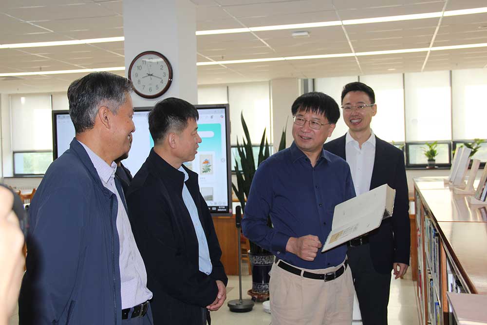 2025 年 9 月 30 日,吉林大学校长张希莅临农学图书馆检查指导工作。在二楼阅览室,他对特藏图书展示活动兴致浓厚,看到原版老图书与图书借阅卡,不禁生出怀旧之情。校长的现场鼓励,极大提振了农学馆特藏文库建设团队的工作热情。