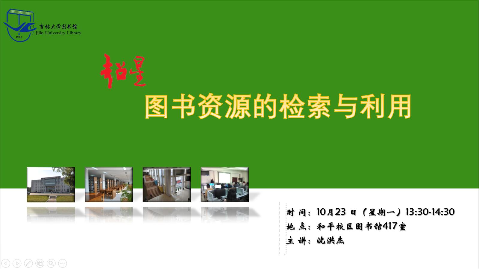 10月23日(周一)13:30-14:30和平校区图书馆四楼多媒体室417 沈洪杰