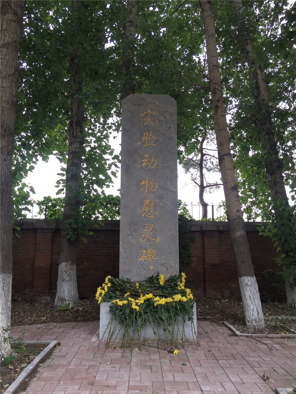 我校实验动物慰灵碑于2012年4月份树碑,位于和平校区实验动物中心楼前树林内,每年动物科学学院新生入学及4月24日当天,都会举行相应的纪念活动。