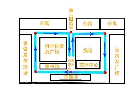 1、健康长跑按照附图箭头方向进行(6圈,全程约5000米)。