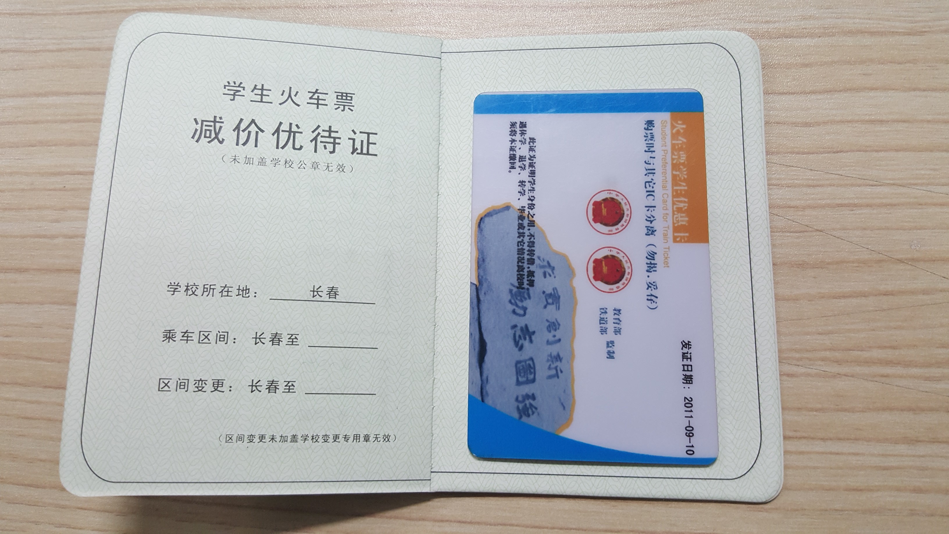 1.原有卡式学生证已不具备学生证效力,仅作为“火车票学生优惠卡”使用,且须背面(有“火车票学生优惠卡”字样)朝上用双面胶粘贴至新版本式学生证指定位置(具体样式见附件),单独持原卡式学生证的不予补充购票次数,后期补办的学生证已直接粘贴火车票学生优惠卡(芯片)。