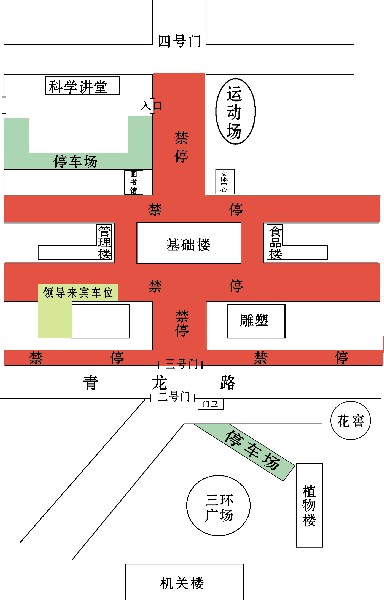 一、15日上午人兽共患病研究所挂牌仪式(7点至11点)和16日上午雕塑揭幕仪式(7点至10点)期间,除参加仪式的保障车辆、来宾、领导车辆外,所有机动车辆禁止停靠在基础楼、管理楼、食品楼前停车场,其他需进入二号院的车辆可停靠在科学讲堂或三环广场指定停车场(见附件示意图)。