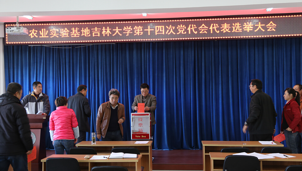 自10月28日以来,农业实验基地党总支按照校党委的统一部署,认真落实《关于做好中国共产党吉林大学第十四次代表大会代表选举工作的通知》精神,在成立“农业实验基地吉林大学第十四次党代会代表选举工作小组”的基础上,先后7次召开了党员大会和党总支会议,就参加学校党代会的代表候选人推荐提名、代表候选人初步人选和代表候选人预备人选进行了规程严谨的选举工作,并于11月15日收到了学校党委同意代表候选人预备人选的正式批复。大会在庄严的国歌声中拉开帷幕,主持人首先介绍了基地出席学校第十四次党代表大会代表推选工作情况;赵志辉同志宣读了学校党委《关于同意农业实验基地党总支报来的农业实验基地出席中国共产党吉林大学第十四次代表大会代表候选人预备人选的批复》;高晓伟同志介绍了代表候选人预备人选情况,按大会程序,全体党员通过了代表候选人名单;唐心龙同志宣读了《选举办法(草案)》,全体党员通过了《选举办法(草案)》;王文众同志宣读了监票人、计票人名单,并得到了全体党员的一致通过。最后,与会全体党员以无记名投票的方式,成功选举出了农业实验基地出席中国共产党吉林大学第十四次代表大会代表。