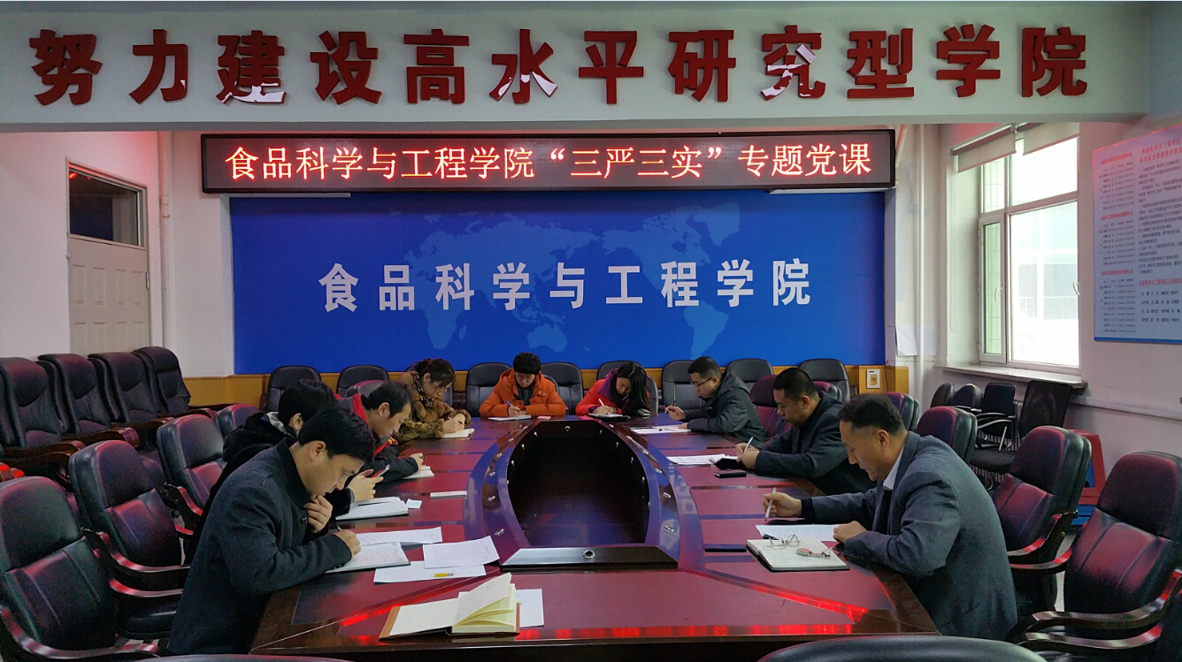 根据学校、学院关于“三严三实”的教育安排,11月30日上午8:30,食品科学与工程学院在食品楼三楼会议室召开了“三严三实”专题教育。学院副院长李勇军同志作了“严以用权,尽职尽责”党课教育。学院党政领导、各系、室、中心主任及支部书记参加了此次专题教育。会议由学院党委书记高福和同志主持。