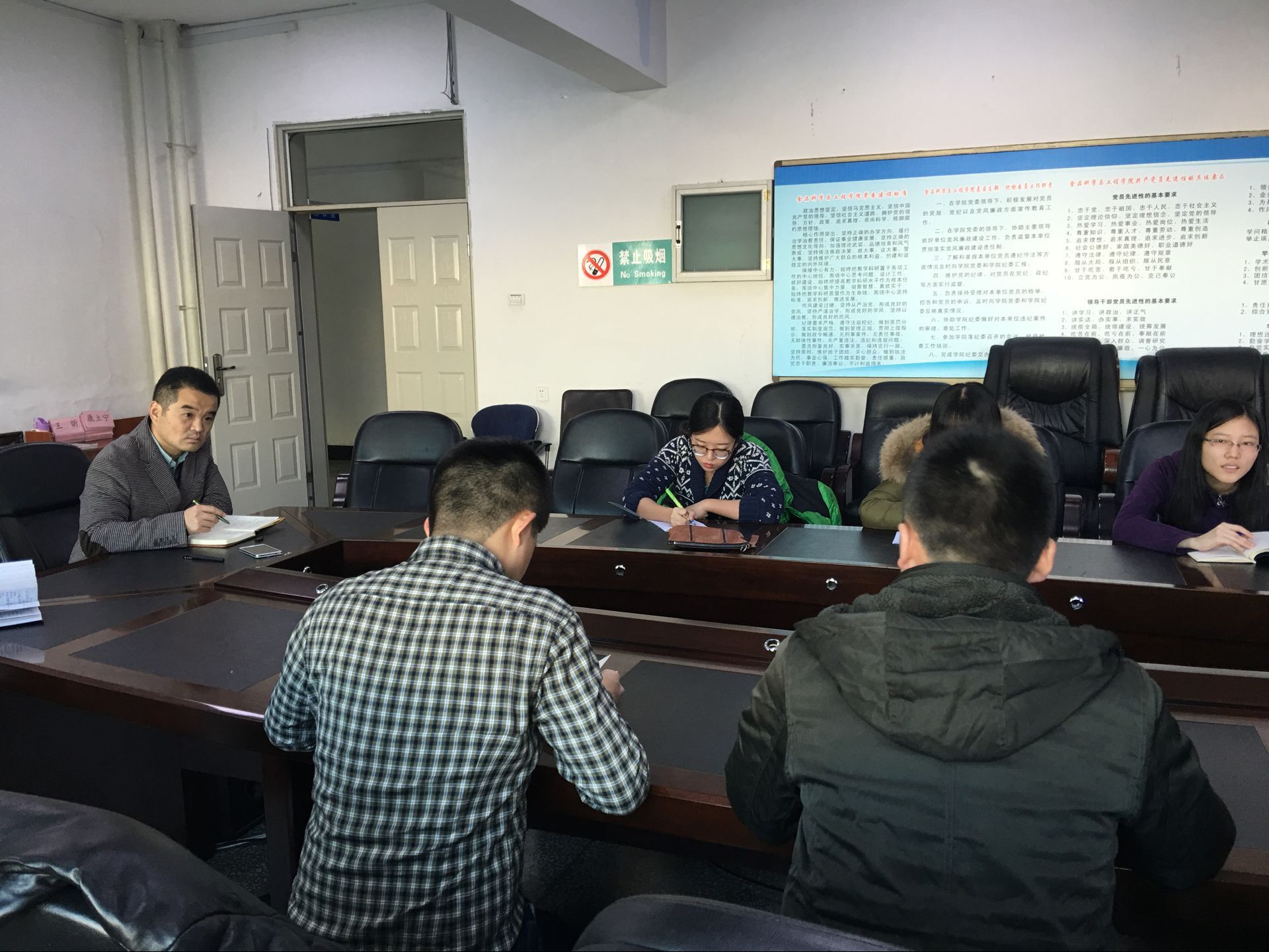 为加强学院学风建设,形成比学赶帮超的良好风气,12月28日下午3:00,食品科学与工程学院于食品楼三楼会议室召开院优秀学生座谈会。学院党委副书记梅士伟,辅导员郝慧和“校十佳大学生”杜志阳等学院优秀学生代表参加会议。