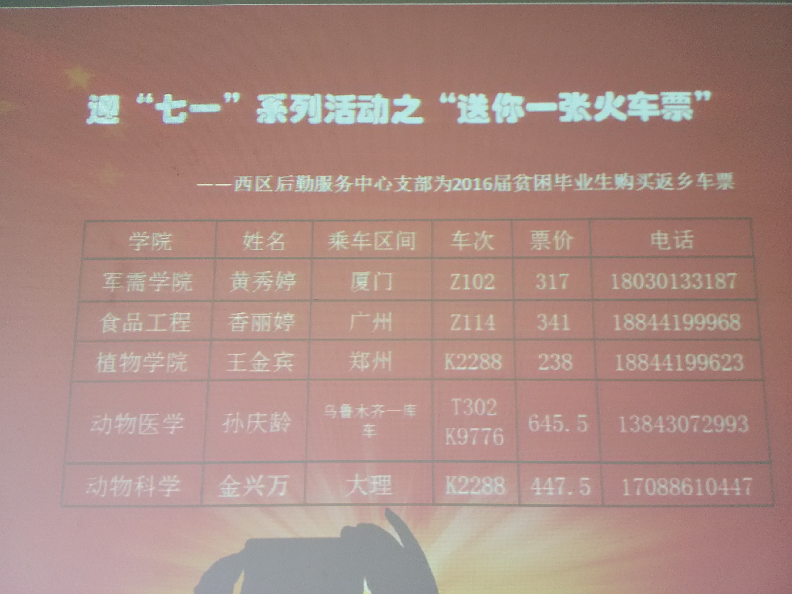 最后,支部书记罗会华同志代表全体党员为5名同学赠送了返程火车票,并祝福同学们工作顺利,前程似锦!