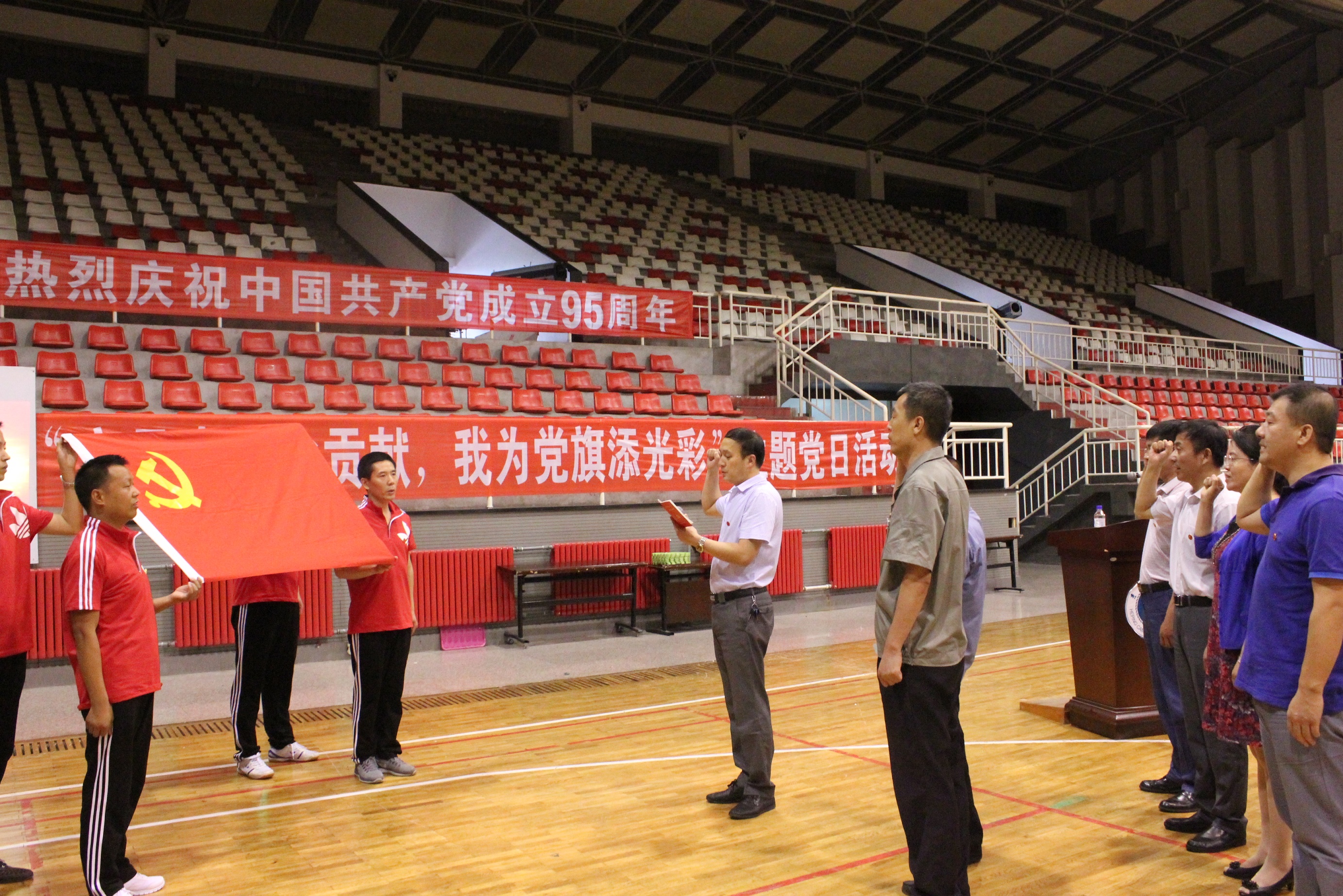 为庆祝建党95周年,继承和发扬党的光荣传统和优良作风,增强党的凝聚力和战斗力,进一步激励全体党员的理想信念、责任感、使命感和荣誉感,推进“两学一做”学习教育活动,7月1日上午9点,西区后勤服务中心全体党员在文体中心开展了 “立足岗位做贡献,我为党旗添光彩”主题党日活动。集团党委副书记兼纪委书记张朝晖同志和党委委员、南岭校区经理鲁强同志应邀参加了活动。