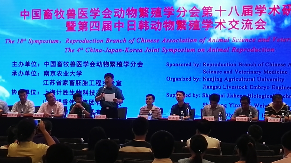 2016年8月18-22日,中国畜牧兽医学会动物繁殖学分会第十八届学术研讨会暨中日韩第四届动物繁殖学术交流会在南京举行。来自中国、韩国、日本和美国的动物繁殖教学、科研与生产领域600余名代表参加了会议。会议特邀了来自剑桥大学的Kei Miyamoto教授、日本九州大学的Katsuhiko Hayashi教授、韩国忠南大学的Inchul Choi 教授等9位专家作专题报告,另有42位国内动物繁殖领域专家及青年学者作大会报告。会议共收到论文摘要281篇,其中英文摘要62篇,会议墙报77篇。动物科学学院张嘉保教授担任大会优秀论文评选委员会主任,袁宝副教授做了题为“孕酮对猪卵母细胞体外成熟及胚胎发育的影响”的大会报告。
