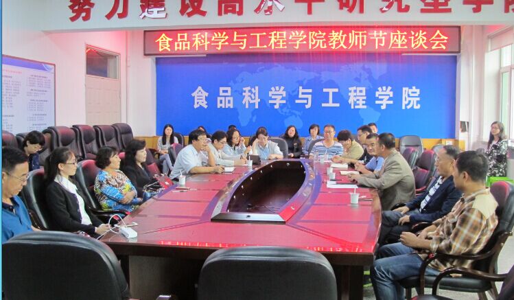 2016年9月9日,食品科学与工程学院在食品楼三楼会议室召开庆祝第三十二个教师节座谈会。食品科学与工程学院领导、学院全体教职工、学生代表参加了座谈会。会议由学院党委书记高福和主持。