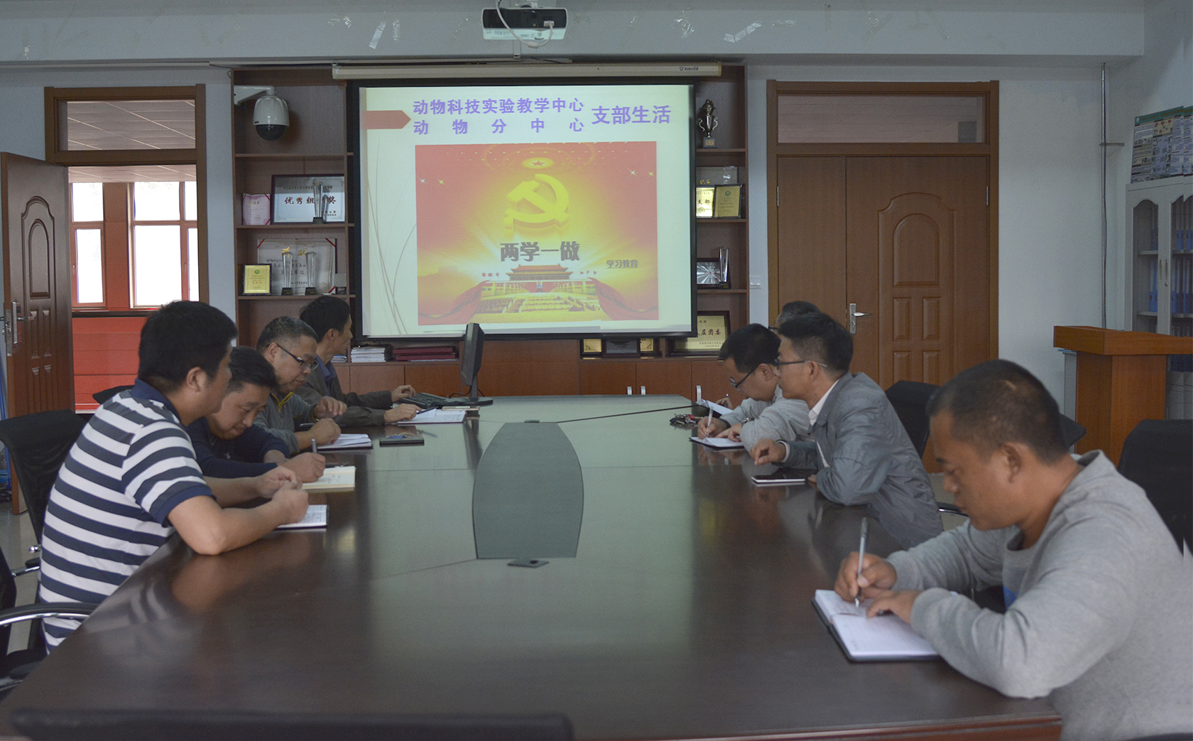 2016年9月26日下午,动物医学学院动物科技实验教学中心(动医分中心)党支部开展“两学一做”第三专题学习教育活动。参会人员有实验教学中心杨举书记,成军副书记等10名党员。会议在杨举书记的主持下顺利进行。