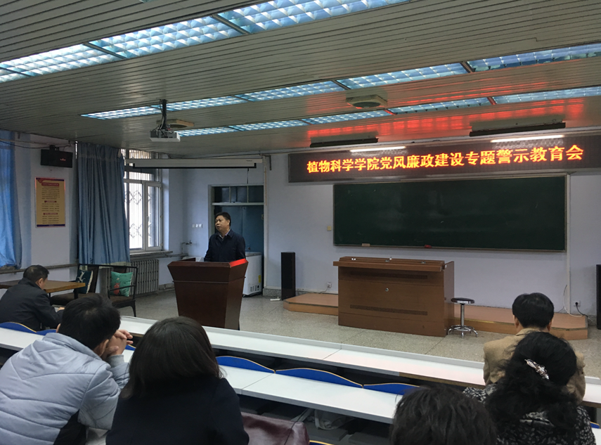 2017年4月26日下午,植物科学学院在学院二楼报告厅召开了党风廉政建设警示教育会。学院全体教职员工参加了会议,会议由院长都兴林教授主持。