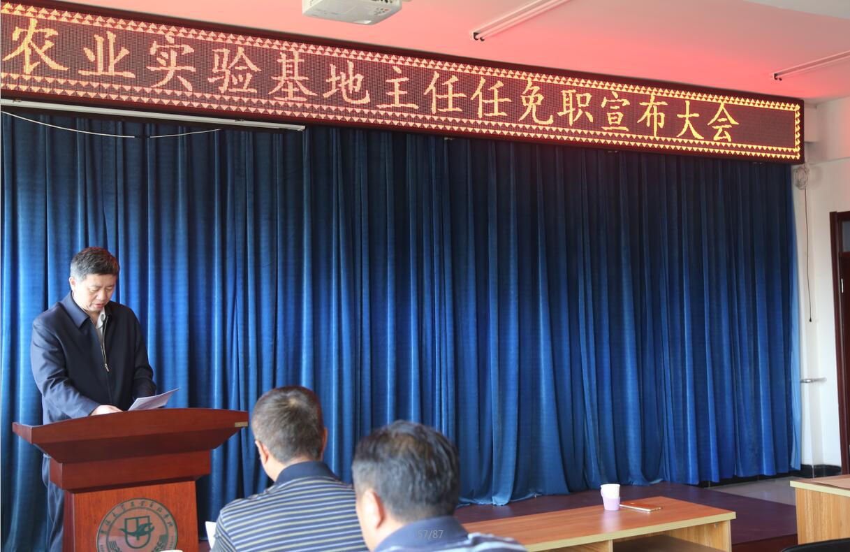 8月29日下午,农业实验基地于综合楼一楼会议室召开主任任免职宣布大会,学校常委、副校长孙友宏教授,校党委组织部齐晓亮副部长,基地党政班子成员、全体教职员工等参加了会议,会议由基地党总支书记董怀智主持。