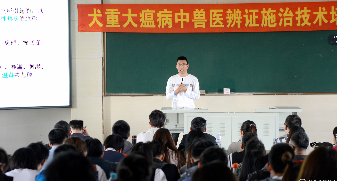 为调动大家学习中兽医学的兴趣和热情,加强对祖国传统兽医学的关注,我院中兽医学教研室主任,博士生导师,付本懂教授于9月15日上午,在动物科技实验教学中心602教室开设了一堂关于犬重大瘟病中兽医辨证施治的技术培训课,参与培训的人员包括本科生、研究生和对此方面感兴趣的宠物医师等100多人。