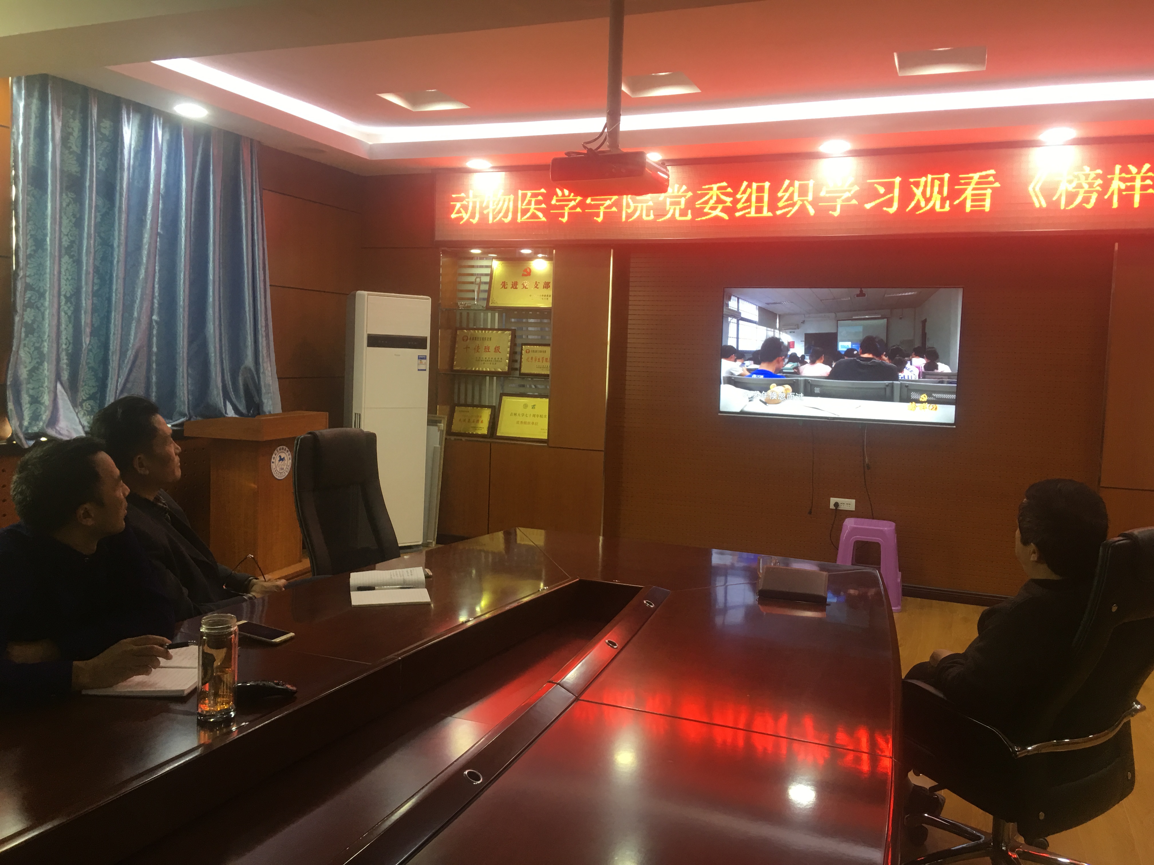 2017年11月1日下午,动物医学学院党委在学院三楼会议室组织党支部书记集中观看 《榜样2》专题片。