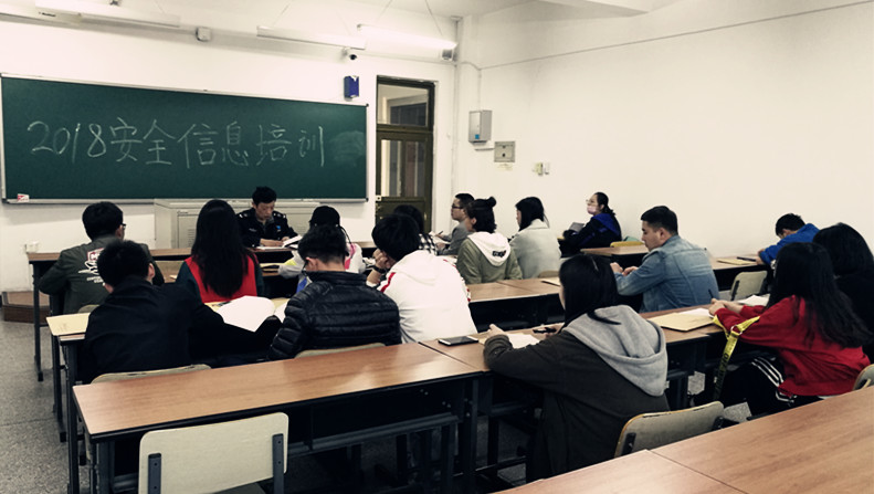 为了提高安全信息员的工作能力,更好地发挥其作用,于2018年4月22日下午,保卫办公室在科学讲堂504教室对校区18名安全信息员进行了相关培训。