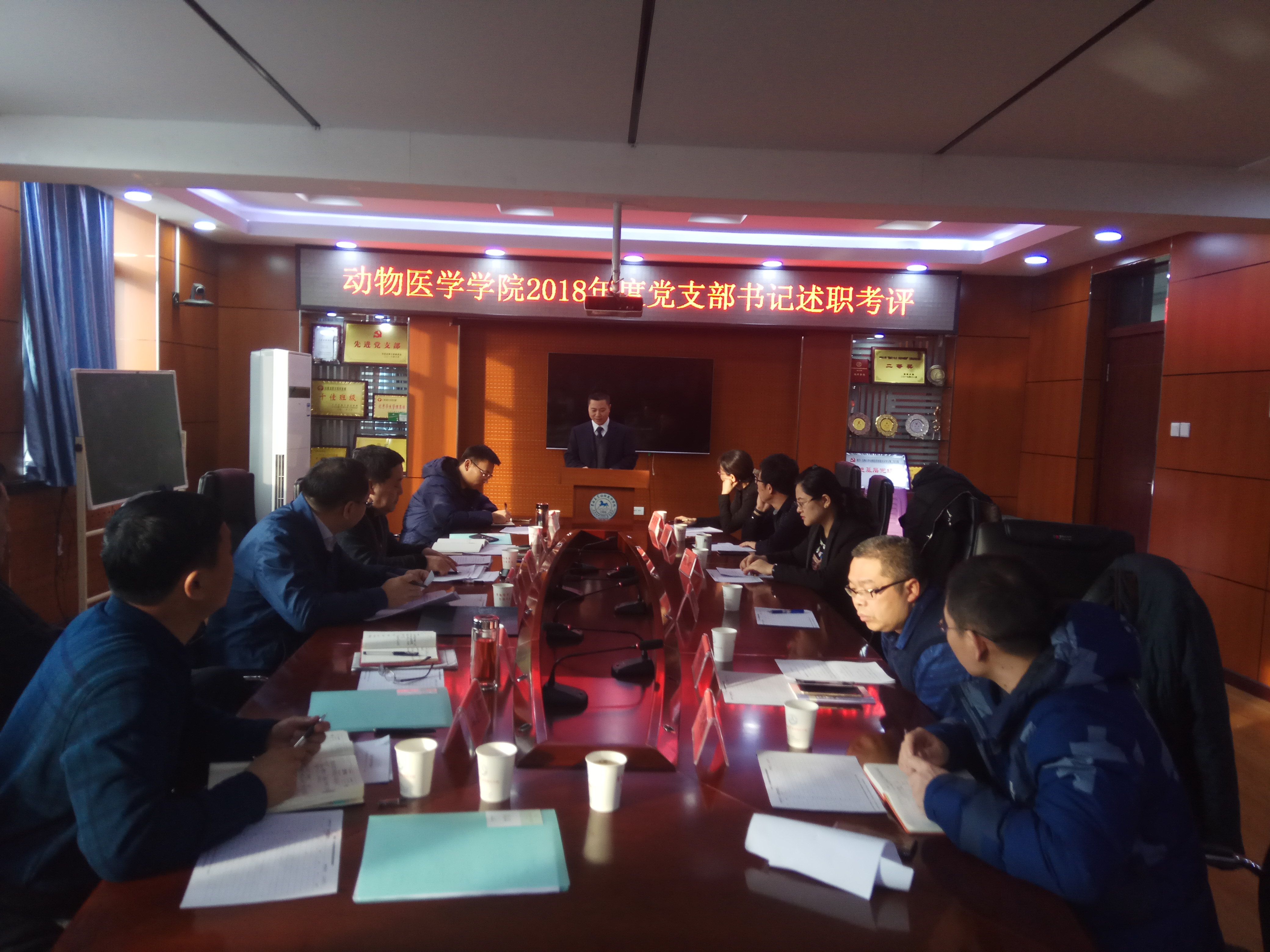 按照学校党委组织部《关于开展2018年度党支部书记述职评议考核工作的通知》要求,2018年1月15日上午9点,动物医学学院党委在学院综合楼三楼会议室组织召开2018年度党支部书记述职考评会,校团委书记代磊、学院党委委员、纪委委员、行政领导班子、党支部书记以及系主任参加了此次会议,会议由党委书记王彦清主持。