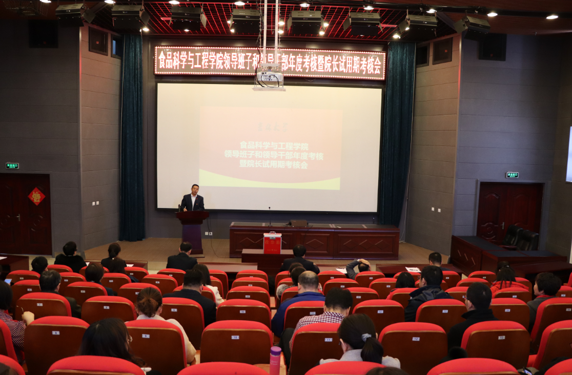 2019年3月13日下午1:00,食品科学与工程学院在西区图书馆二楼报告厅召开2018年度领导班子和领导干部年度考核暨院长试用期考核会。学院领导、全体教职工参加了会议。学校考核工作组长、党委组织部副部长齐晓亮、科长杨可莅临指导。会议由党委书记高福和同志主持。
