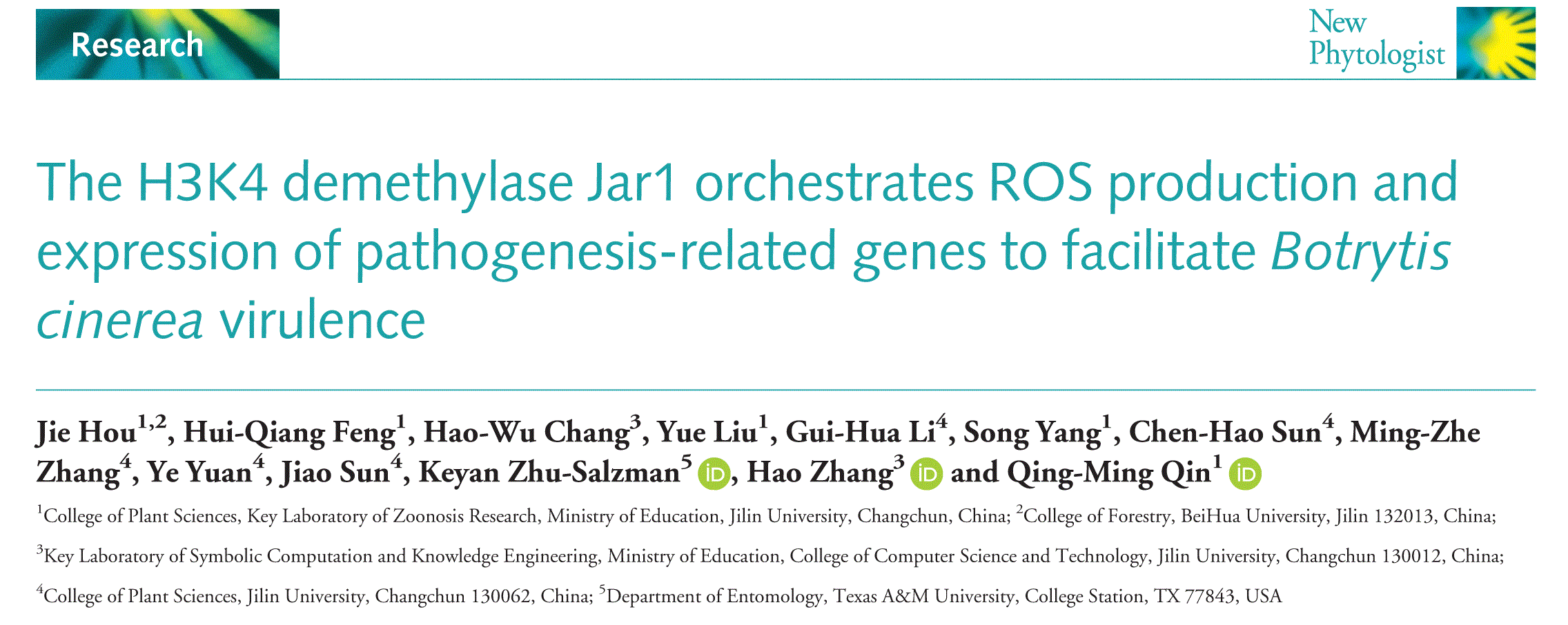 博士生侯杰为论文第一作者,秦庆明教授为通讯作者。该项研究获得了国家自然科学基金,吉林大学海外优秀人才引进计划和公益性(农业)科研专项的资助。