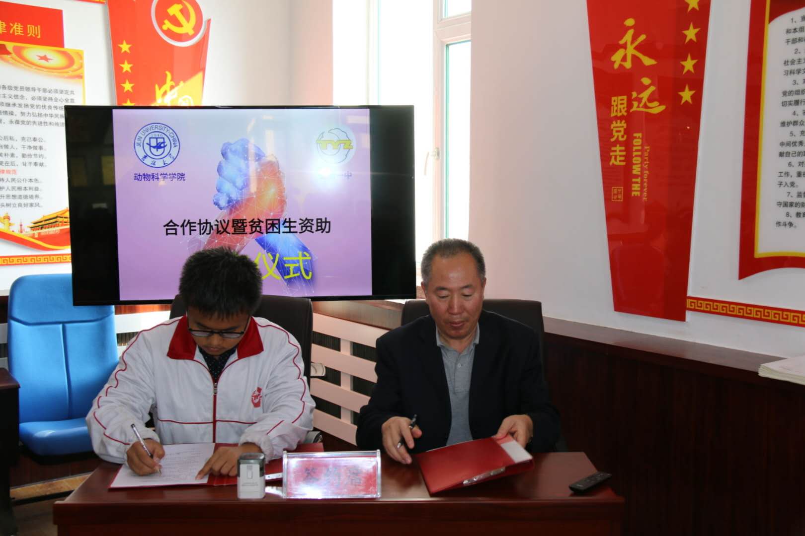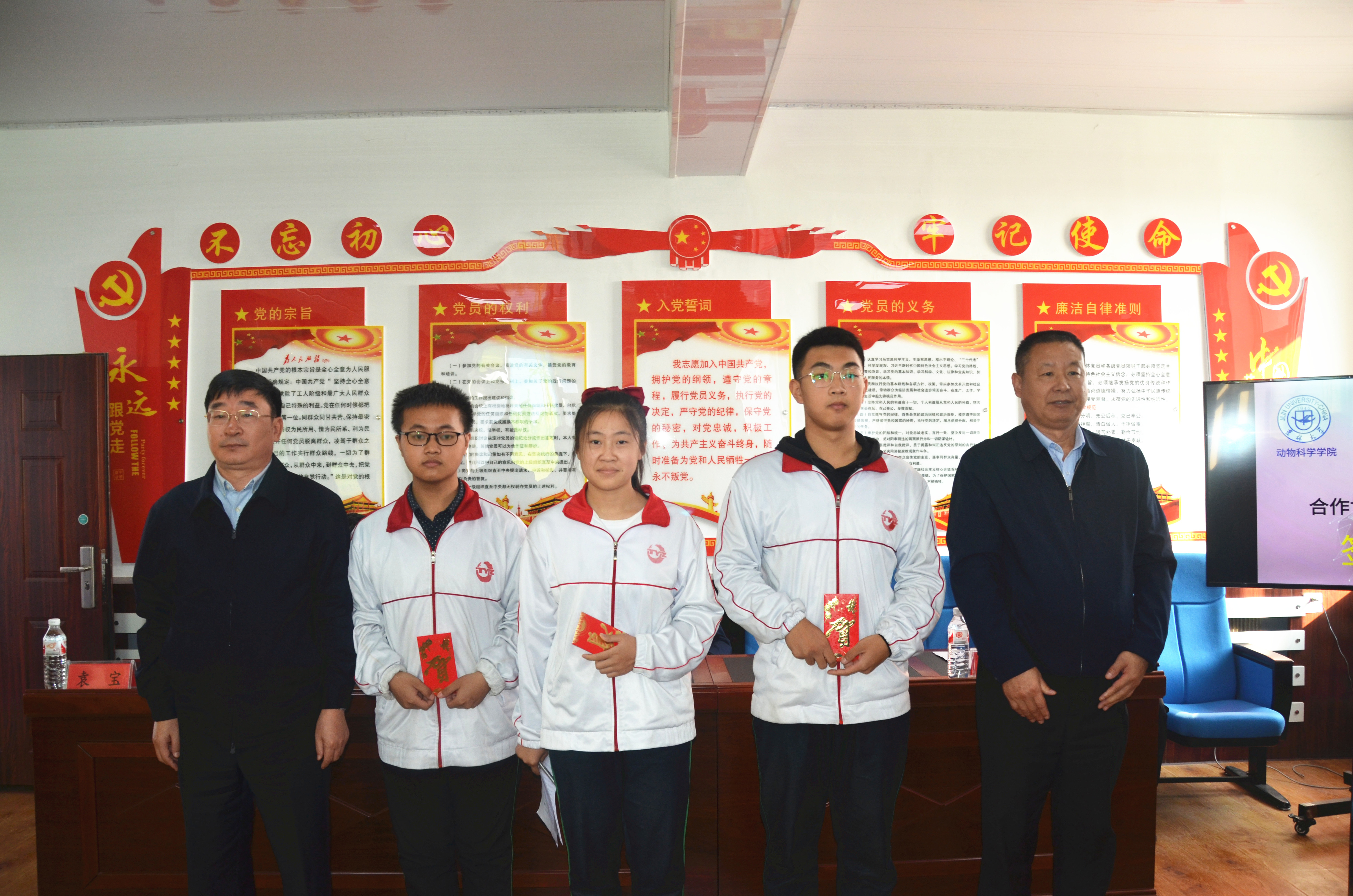 仪式在热烈的掌声中结束,吉林大学动物科学学院与通榆一中的合作自此拉开了序幕,学院鼓励一中优秀学子报考吉林大学,报考动物科学学院,并将资助贫困学生顺利完成学业,助力教育扶贫。